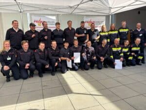 Der BFV Graz-Umgebung führte am 11.10.2025 in Fernitz seinen diesjährigen Bewerb um das Funkleistungsabzeichen in Bronze (FULA B) durch. Neben vielen Teilnehmern aus unserem Bereichsfeuerwehrverband nahmen auch 19 Teilnehmer unseres Abschnittes der Feuerwehren Friesach-Wörth, Frohnleiten-Stadt, Peggau, Semriach und Mayr-Melnhof GmbH daran teil. Bei diesem Bewerb müssen die Teilnehmer an 6 Stationen ihr Können rund um das Funkwesen in der Feuerwehr unter Beweis stellen. Mit dem Hissen der weißen Fahne dürfen wir allen Teilnehmern aus unserem Abschnitt sehr herzlich für ihre Leistung gratulieren – alle konnten das Funkleistungsabzeichen in Bronze aus den Händen von LFR Gernot Rieger, unserer Bereichsfunkbeauftragten BI d.F. Stefanie Kristan und Bewerbsleiter BR d. F. Heinz Brunnhofer (Landesbeauftragter für das Funkleistungsabzeichen) in Empfang nehmen.